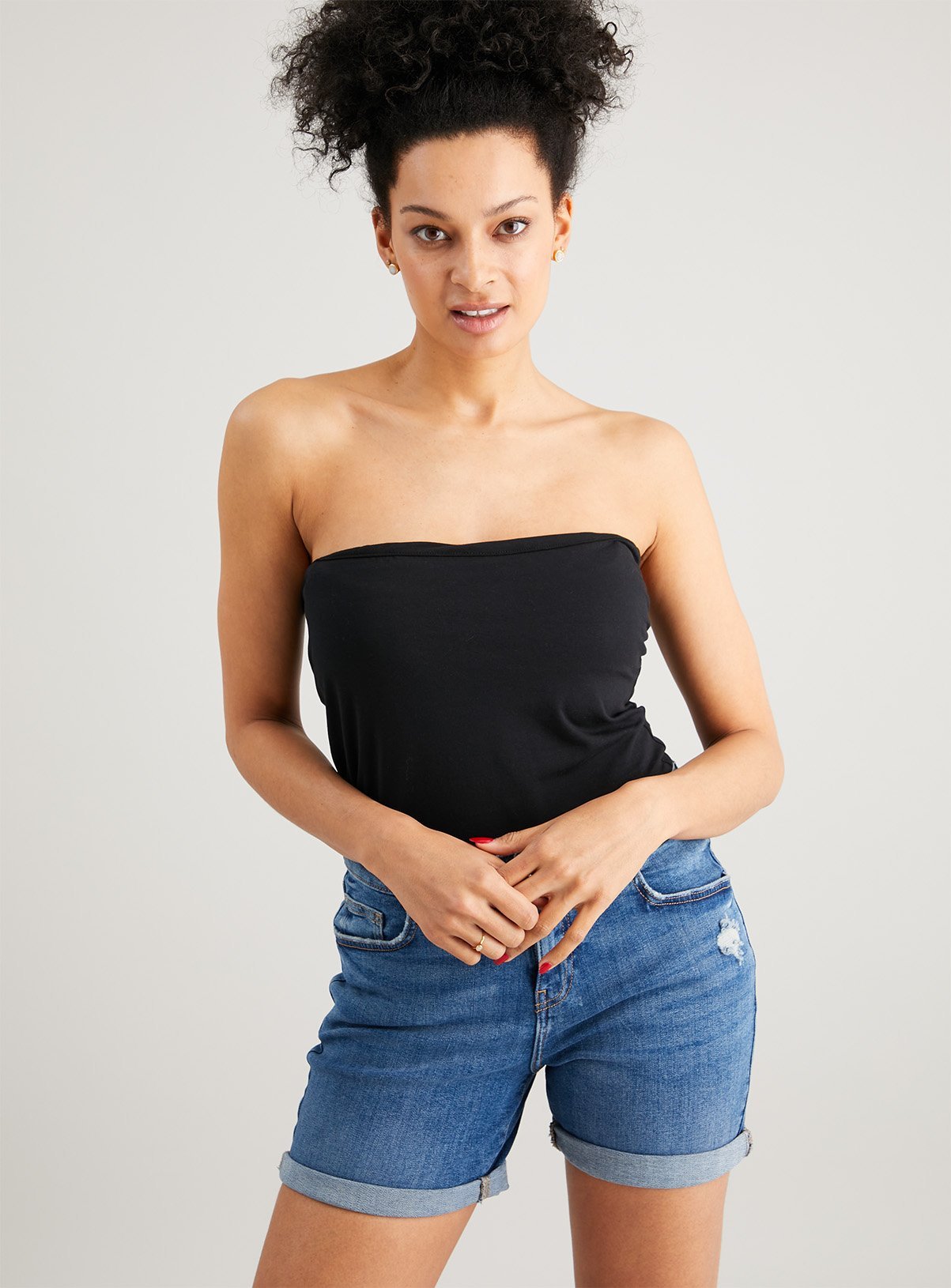Do you have something strapless or sheer that you need a bit of extra coverage for? This stretchy longline bandeau has got you sorted. With hidden bra support inside and plenty of stretch for a smooth silhouette, it comes in several colours. Online exclusiveBlack strapless bandeau topHidden supportLonglineStretch