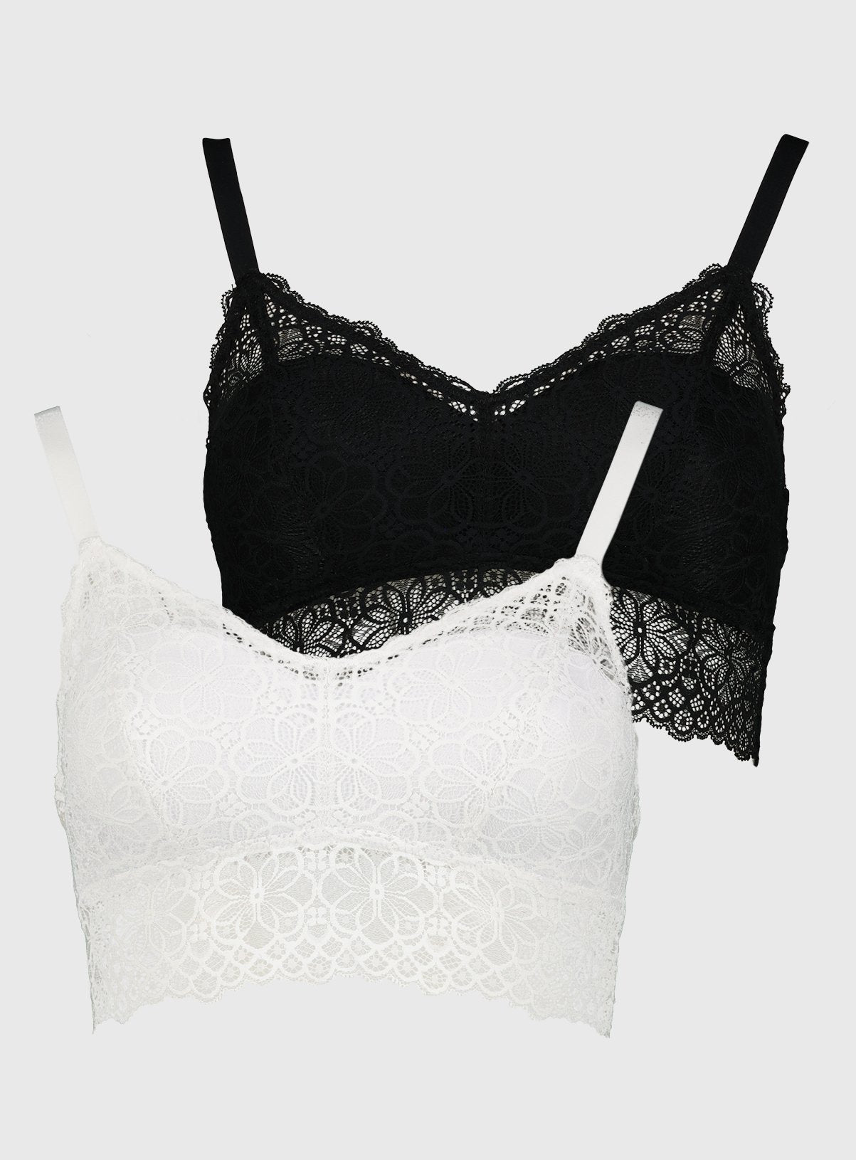 Black & White Recycled Lace Bralette 2 Pack - 10