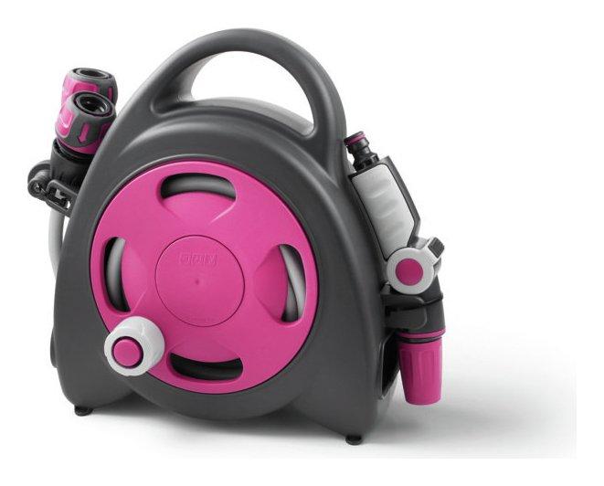 This 16.5m hose is a lightweight and practical solution to your watering needs. It's long enough to serve most patios, balconies and is a good size for small gardens. It comes fully equipped all the fittings you'll need, and for ease these can be attached to the reel. Specifically, it includes a 3/4" metal tap connector (this will connect to a standard UK or Irish outdoor tap), metal tap adapter (useful if you have a different size outside tap), 2 soft touch hose fittings and a multi-jet spray gun. The 2 soft-touch hose fittings are universal, meaning that this can be connected to any existing make of hose you may have (including Hozelock, Karcher and Gardena). And when you're finished using it, you can wind it away into a size that's small and easy-to-store. The multi-jet spray gun can easily be adjusted to one of three spray settings, so you can water everything from seedlings to wide areas of the lawn. With a soft-touch trigger, it's easy to use for prolonged watering and can be locked in place. The total length is 16.5m, which includes 1.5m of hose from the reel to the tap and 15m of hose which can be easily unwound. Weighing less than 3kg, it's very light and compact, yet you can easily water a wide area. 16.5m length, 11.5mm diameter hose. Accessories included:1 pattern spray gun. 1 hose end connector. 1 universal connector. Threaded tap connector. Indoor tap connector and outdoor tap connector. Hose nozzle. General information:Reel can be free standing, . Size H34.5, W20, D35cm. Weight 2.8kg. Manufacturer's 1 year guarantee .