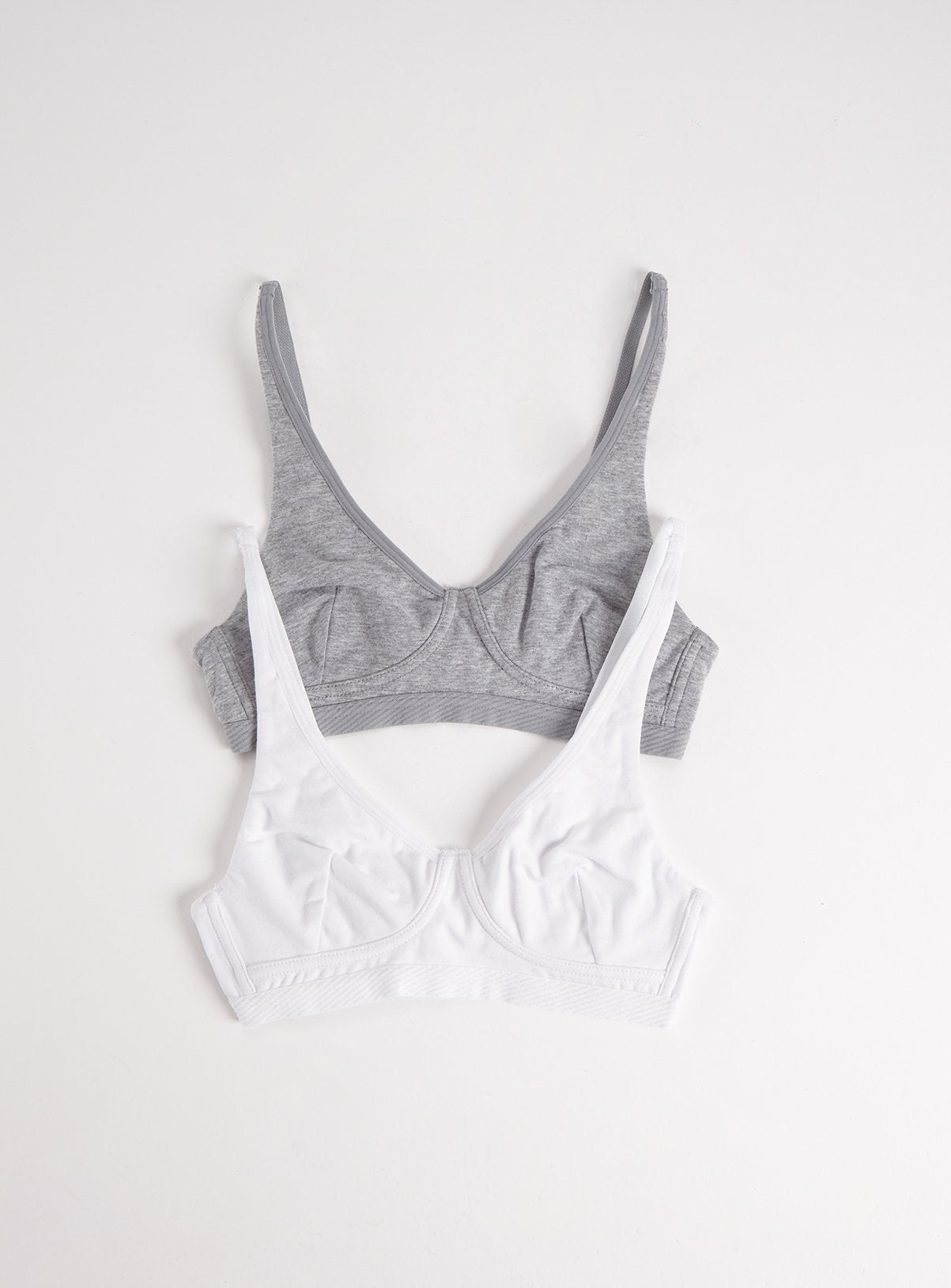 Cotton-rich and super soft for ultimate comfort, our grey and white non-padded bra duo come with brushed inner cups for modesty and comfort. With classic hook and eye fastening at the back, and straps for an adjustable fit, these are a staple for your everyday underwear drawer. Ideal for the smaller bust.Smaller bust1 x White 1 x Grey Non-padded Hook & eye fastening Adjustable strapsSupersoft for ultimate comfort Discreetly lined with cotton for modesty Non-wired Keep away from fire