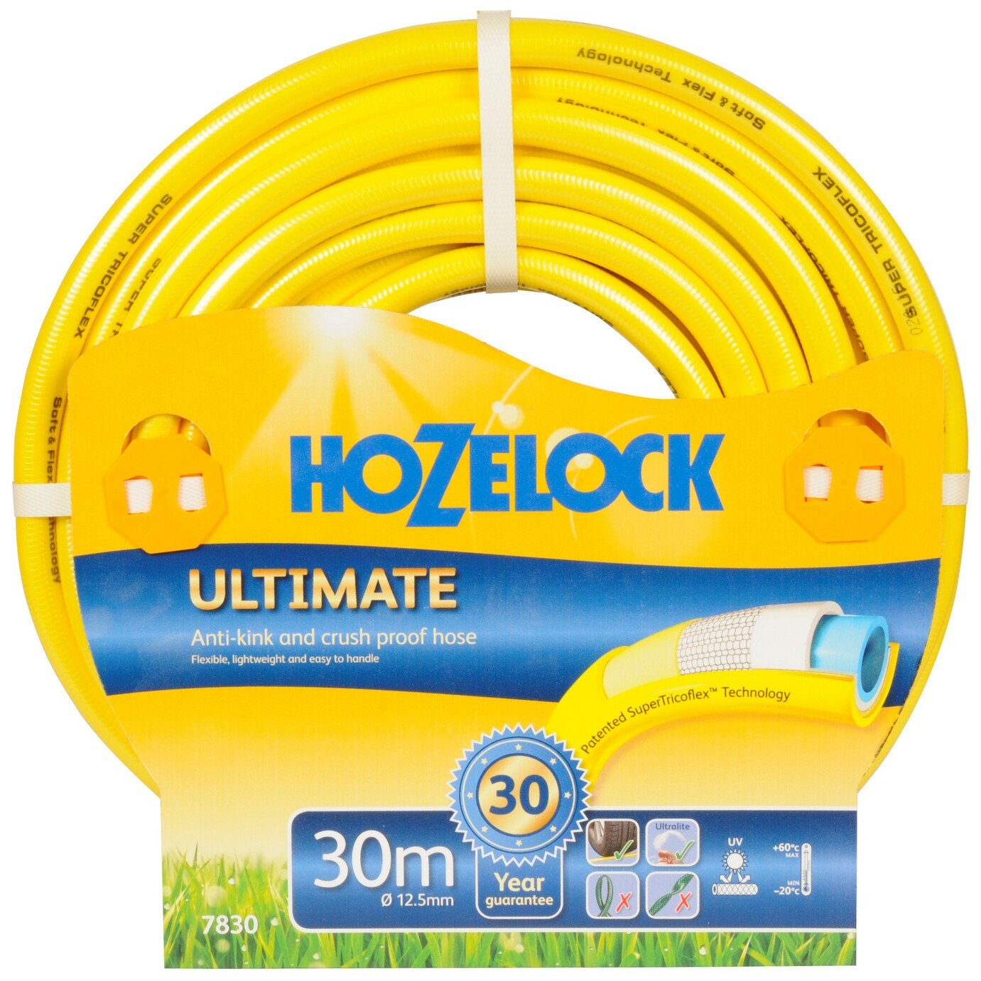 The ultimate 5 layered knitted structure delivers strength, durability and controlled flexibility, whilst the smooth outer layer allows the hose to manoeuvre and rewind easily and effortlessly. The Tricoflex knitting technology provides fantastic reinforcement to the hose without sacrificing flexibility. Weather proof with UV and frost protection guarantees that your hose can be used effectively in a range of climates from -20C up to 40C. 30m length, 12.5mm diameter hose. General information:Size H12.5, W38.9, D38.9cm. Weight 3.81kg. Manufacturer's 30 year guarantee . EAN: 5010646055512.